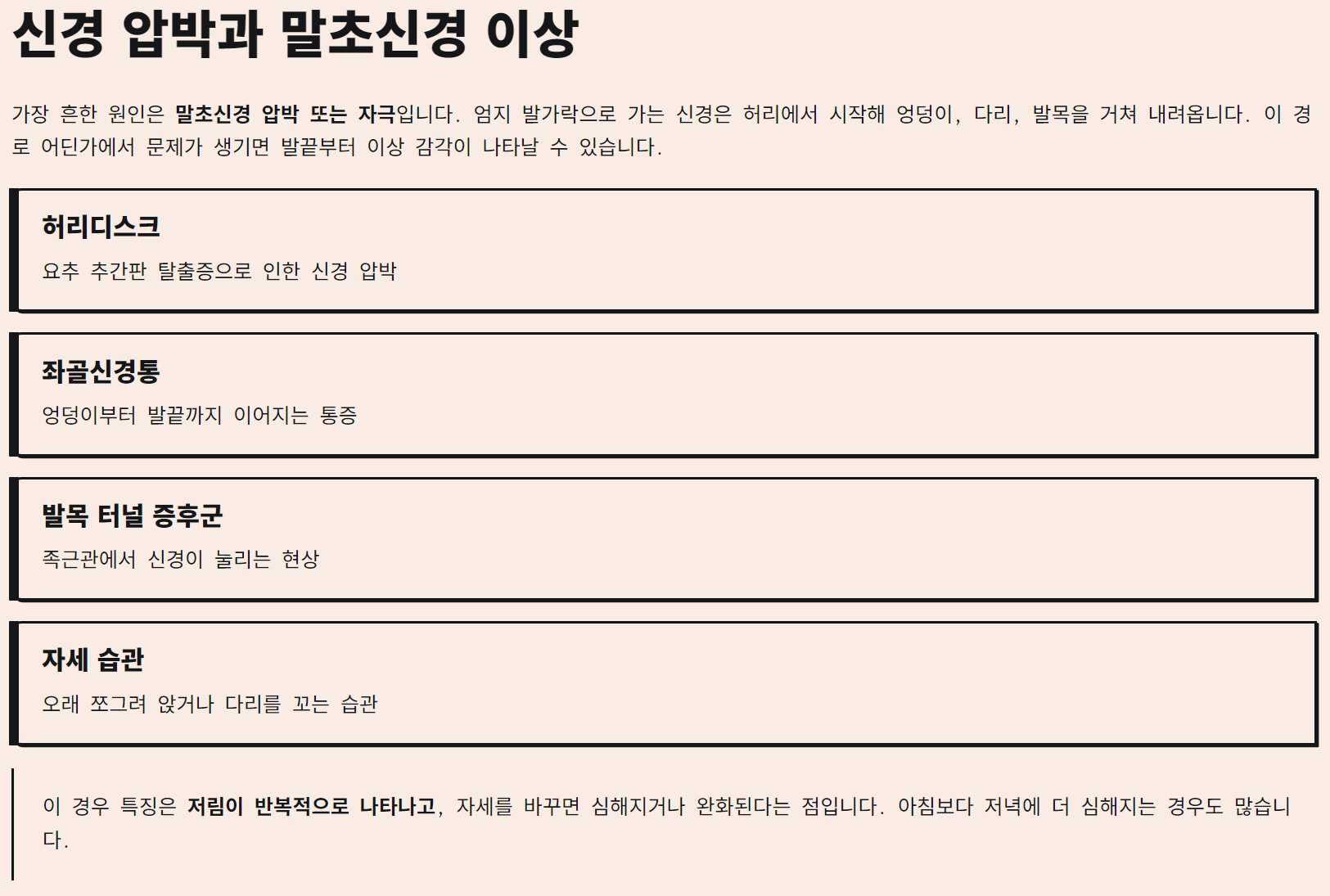 ① 신경 압박과 말초