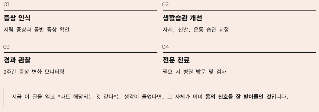 - 신발 교체만으로도 호전 가능
