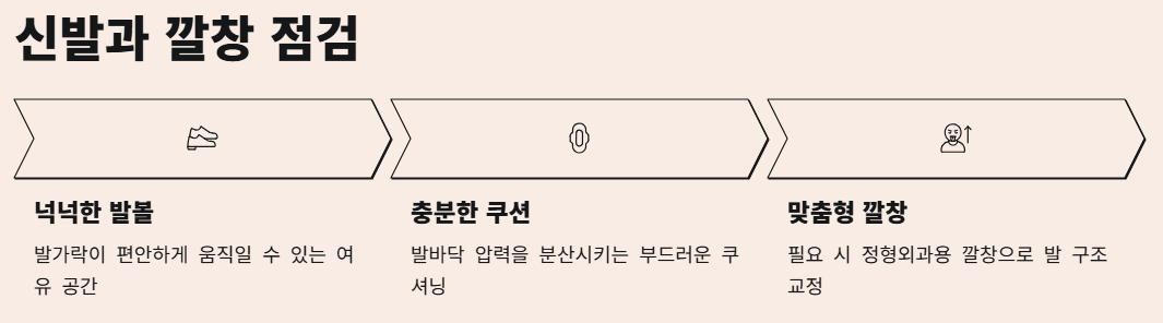 - 필요 시 정형외과용 깔창 사용